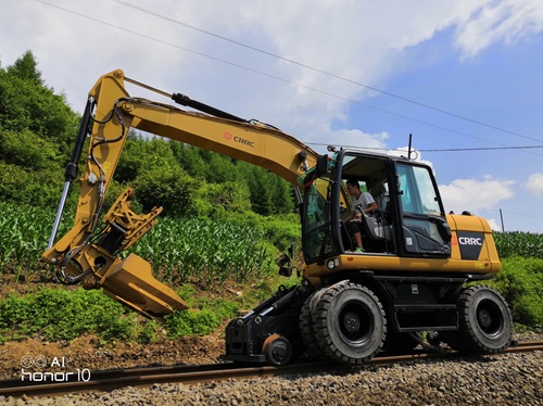基于深度定制15t挖机平台,采用三节臂作业,保证高度限位的同时具有更大的作业范围,具有钢轨自走行功能,主要以多功能作业为主,可实现道岔清筛、道床捣固、树枝修剪,线路整形等作业。
